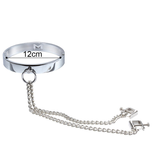 Adjustable Pinch Nipple Clamps w/ Metal BDSM Collar